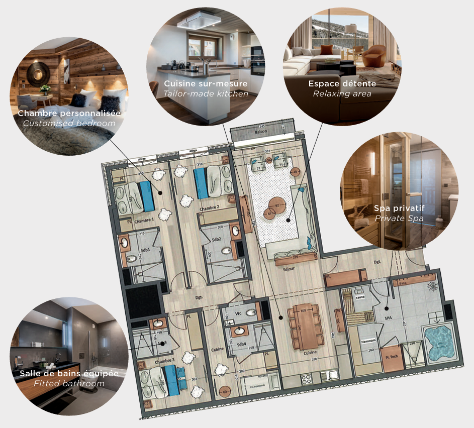 Vous profiterez de 31 lodges de 61 à 255 m2, associés aux différents services hôteliers 5* qui feront de votre futur bien, le lieu de nombreux souvenirs à la montagne !